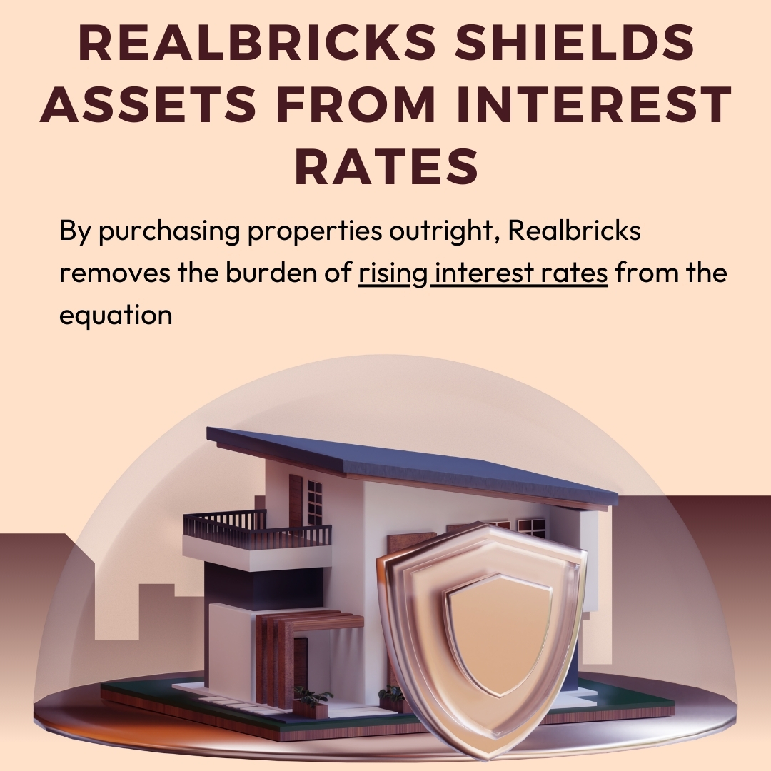 As interest rates continue to rise, traditional real estate investments may become less attractive due to increasing financing costs. Realbricks, however, stands as a beacon of stability in uncertain times. By focusing on debt free properties, Realbricks not only helps to safeguard your investment but also positions you to better benefit from potential long-term appreciation.
